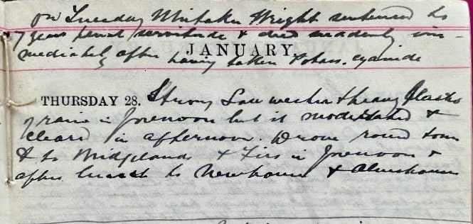 1 James Whitaker Wright (1846-1904), company promoter and fraudster. He lived at Witley, Surrey, not far from Dr Muir’s Surrey relations. His (largely fraudulent) financial empire collapsed in 1900, causing mayhem in the London Stock Exchange. On 26 January 1904 he was convicted of fraud and given a seven year prison sentence. Shortly after the sentence was pronounced, Whitaker swallowed cyanide and died. [‘Whitaker Wright (1845-1904), Company promoter’ at https://www.npg.org.uk/collections/search/person/mp04941/whitaker-wright%5D.