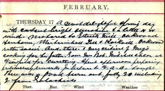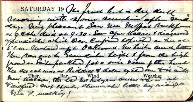 Another posting in the occasional series of 1913 diary entries