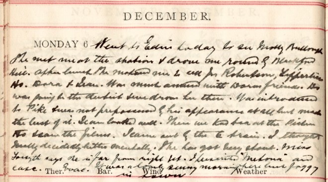 6 December 1920 diary of Dr John Stewart Muir (1845-1938) of Selkirk