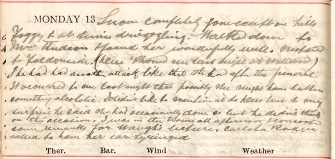 3 Edith Mary Boileau Dees née Henderson (1872-1948), Phyllis Dees’ mother, who had collapsed after her daughter’s funeral (see diary entry for 4 December)