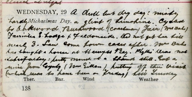 29 September 1920 diary of Dr John Stewart Muir (1845-1938) of Selkirk
