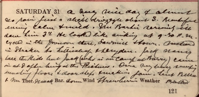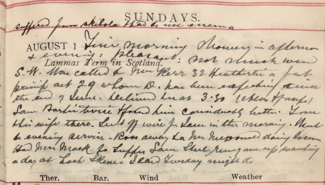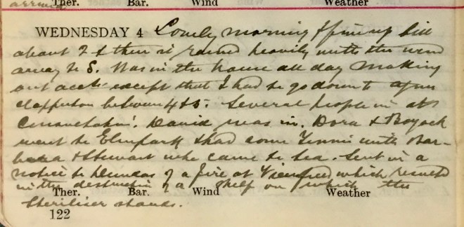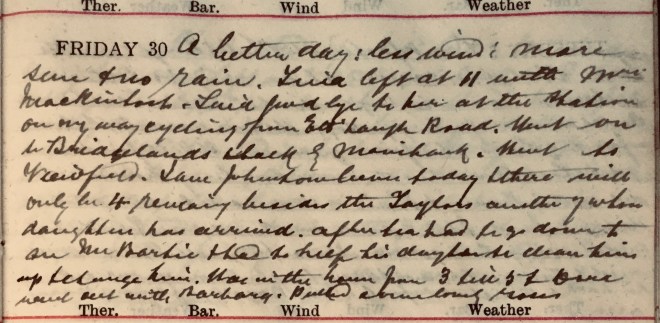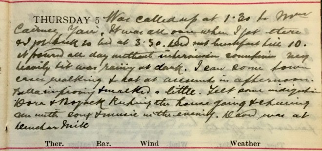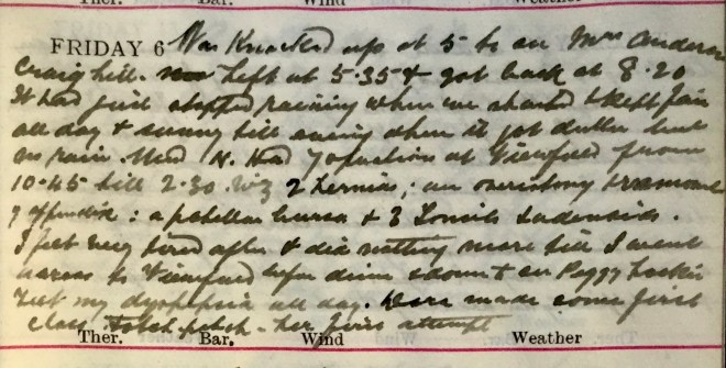 1 Miss Boyack was a friend of Dora’s who stayed with the Muirs from 3rd to 31st August 1920; perhaps they knew one another from wartime nursing (she went on a number of Dr Muir’s calls and assisted on at least one occasion) but she is otherwise unidentified