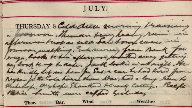 8 July 1920 diary of Dr John Stewart Muir (1845-1938) of Selkirk