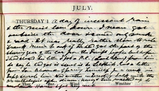 1 July 1920 diary of Dr John Stewart Muir (1845-1938) of Selkirk