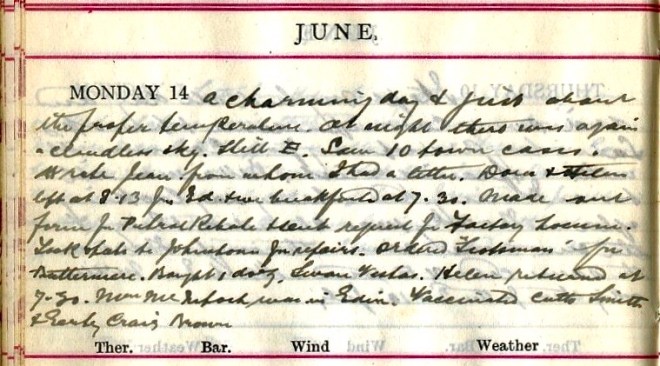 [Source: Scottish Borders Archives & Local History Service SBA/657/23, Dr J S Muir of Selkirk, medical practitioner, journal for 1920]
