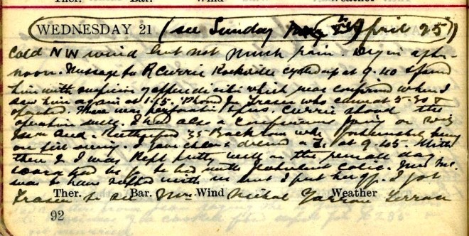21 April 1920 diary of Dr John Stewart Muir (1845-1938) of Selkirk