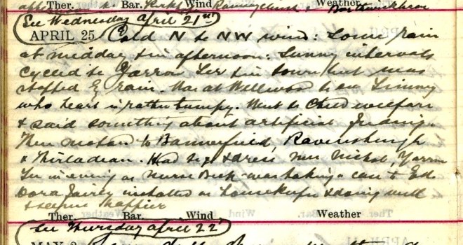 25 April 1920 diary of Dr John Stewart Muir (1845-1938) of Selkirk