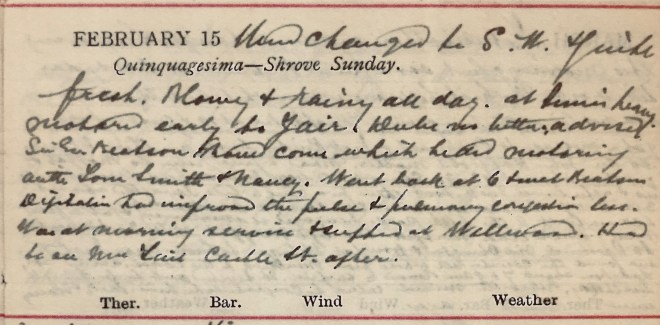 15 February 1920 diary of Dr John Stewart Muir (1845-1938) of Selkirk