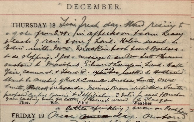 18 December 1919 diary of Dr John Stewart Muir (1845-1938) of Selkirk